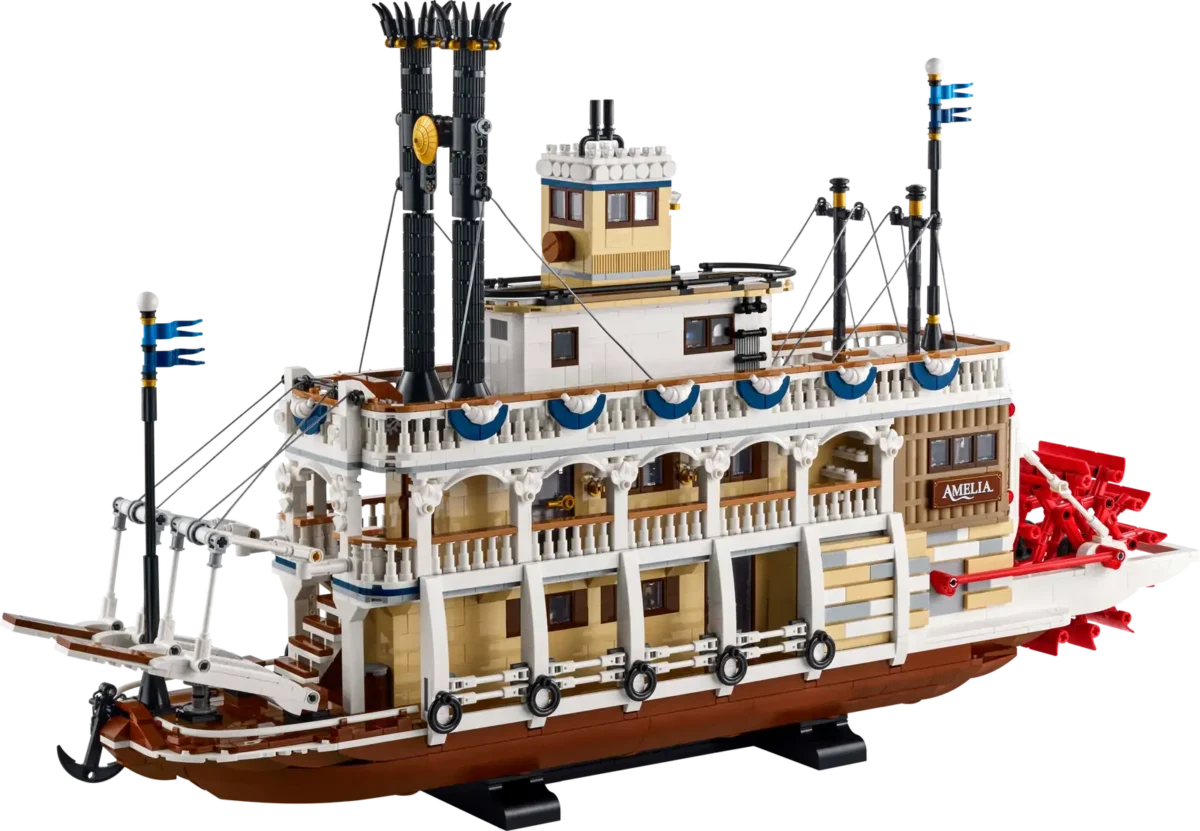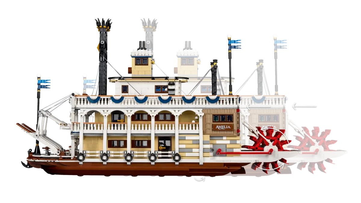- Nautical decor for the home or office – Create a detailed LEGO® Ideas display model of a classic river steamboat that has been refurbished to become an entertainment tour boat and steam engine museum