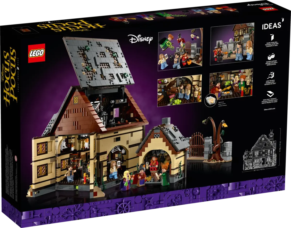 - LEGO® Ideas Disney Hocus Pocus building set (21341) – Relive hilarious scenes from classic Halloween film Disney Hocus Pocus with this detailed buildable model of The Sanderson Sisters’ Cottage