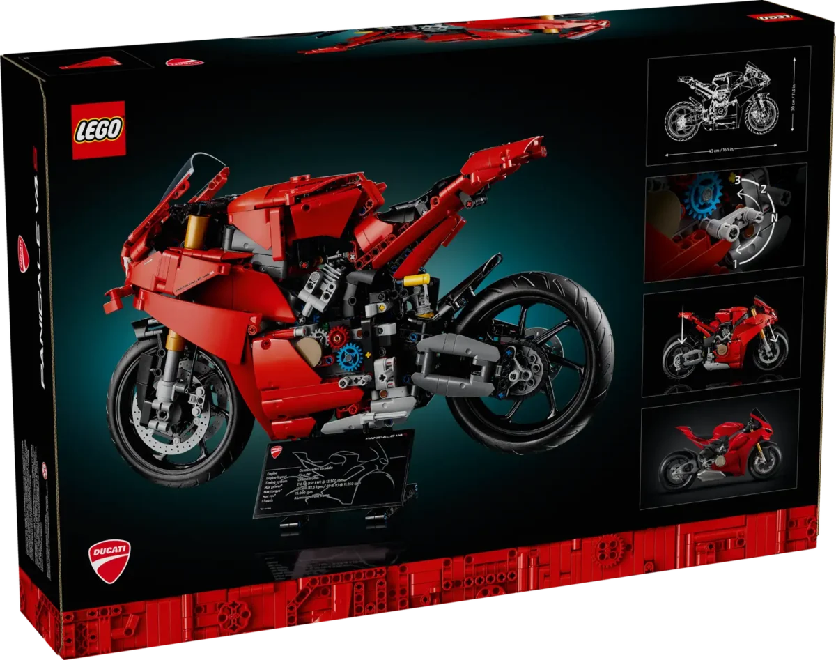- LEGO® Technic Ducati Panigale V4 S Motorcycle – The model is packed with impressive details and authentic features like the front and rear suspension and steering